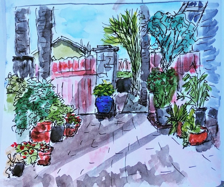 My husband, thetravelsketcher, painted the picture above of the front patio.