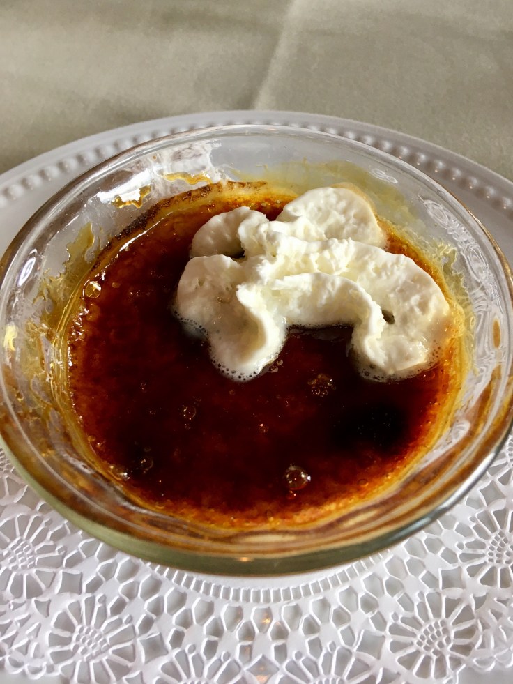 We always start with a glass of cava and some oysters or the appetizer of the day. When we ate there last week to celebrate our 32nd wedding anniversary, the special appetizer was a crab brûlée with local mushrooms.