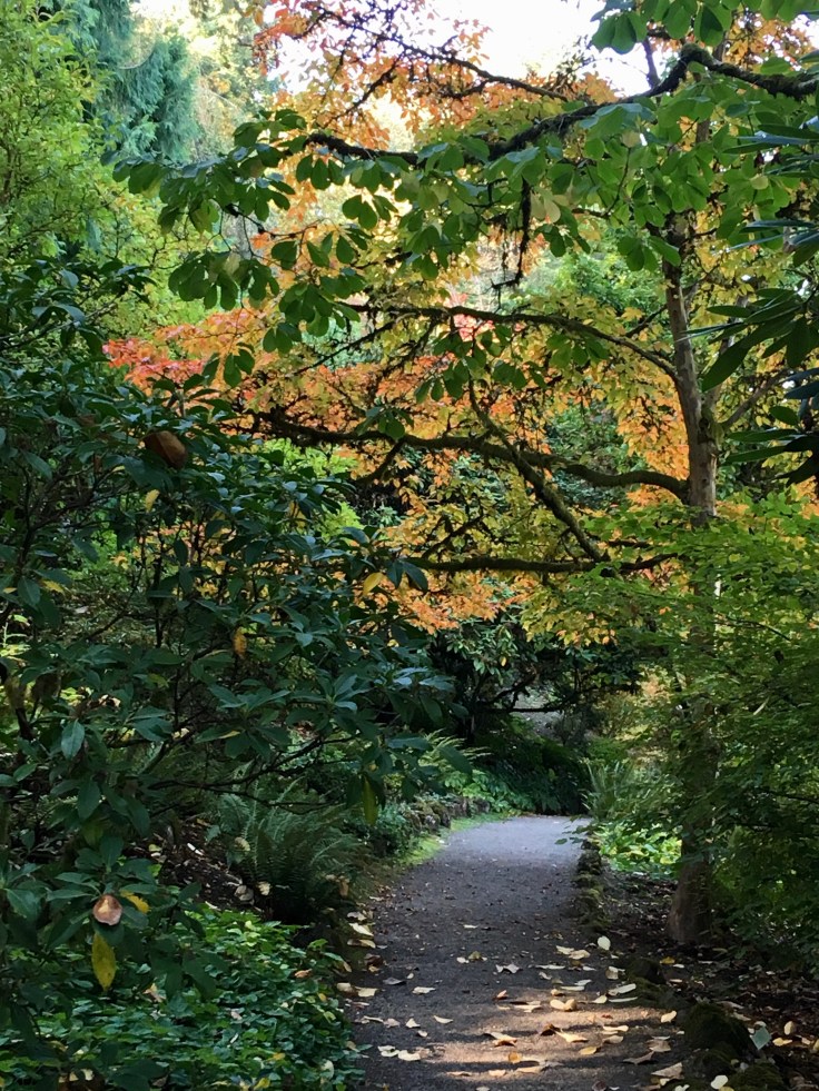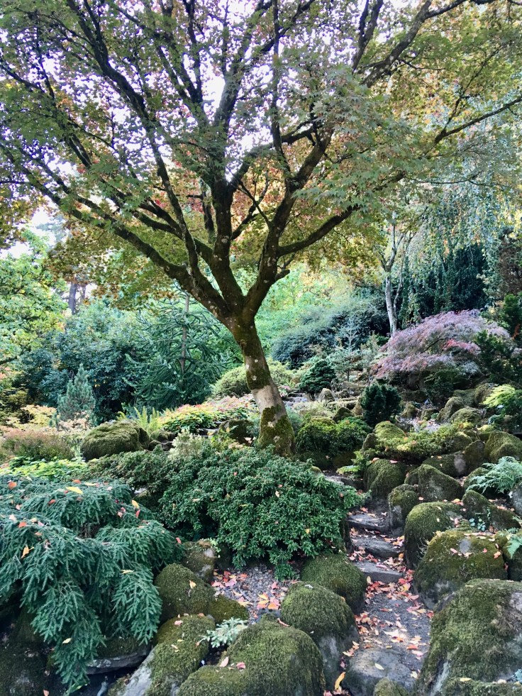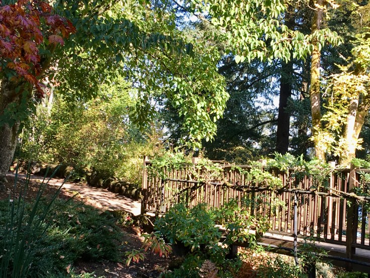 Elk Rock Gardens at the Bishop’s Close, dates back to the late 1800s and is one of the oldest gardens in Oregon. Perched on the cliffs high above the Willamette River, this 13 acre garden is a lovely place to stroll and take photos. We visited a few years ago with our dear friends Tim and Lisa, on one of our weekend visits to Portland. It was a sunny autumn day, and we were immediately charmed with the beauty and serenity of this local gem.