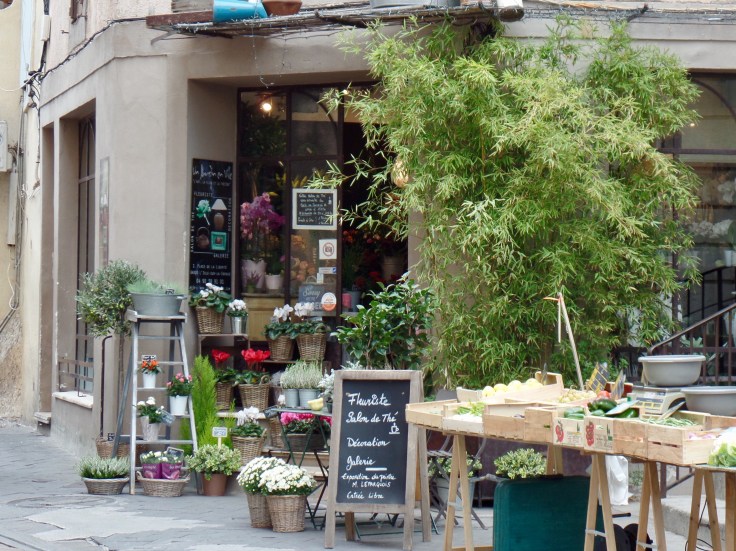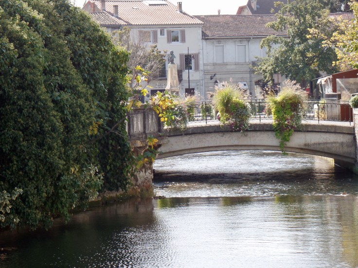 The town is crisscrossed with waterways, narrow streets, and old stone buildings dotted with shutters, some sporting shades of that mysteriously lovely Provencal Blue. There is a central park in the center of town filled with tall leafy trees and spotted with benches and stone tables where you can bring cheese, bread, fruit, or a fabulous pastry from the market and simply watch ducks play in the water, observe children learning how to sit upright in a kayak (and sometimes not quite achieving that goal), or just watch the world saunter past. If that is all you do in ‘Isle’ that is fine as it is the simple things that create the most vivid memories.