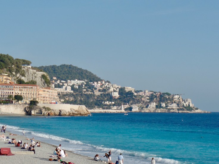 As I mentioned last week in my blog post about Eze, we visted a few years ago in October. The weather was warm and sunny so we sat in a beach cafe and watched the world go by. The beach was packed with sunbathers and swimmers.