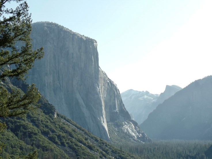 Tunnel View and Yosemite Falls in Yosemite National Park.