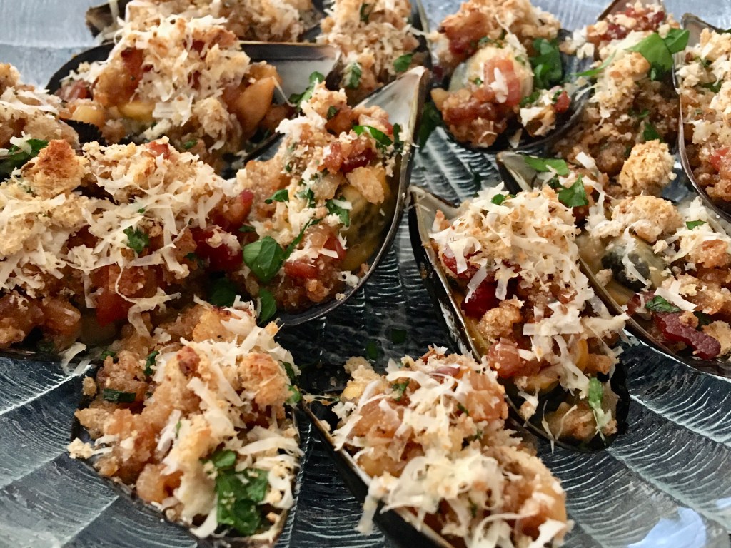 The Pacific Northwest is seafood heaven with a dazzling variety of options, availability and creative methods of preparation. Over the years, I have enjoyed cooking with shellfish and have tried many different techniques. I developed this recipe after finding some inspiration online (thanks to the hundreds of recipes available for stuffed mussels). This delicious dish makes a great appetizer and will work well for a large group. The recipe can easily be doubled or tripled.