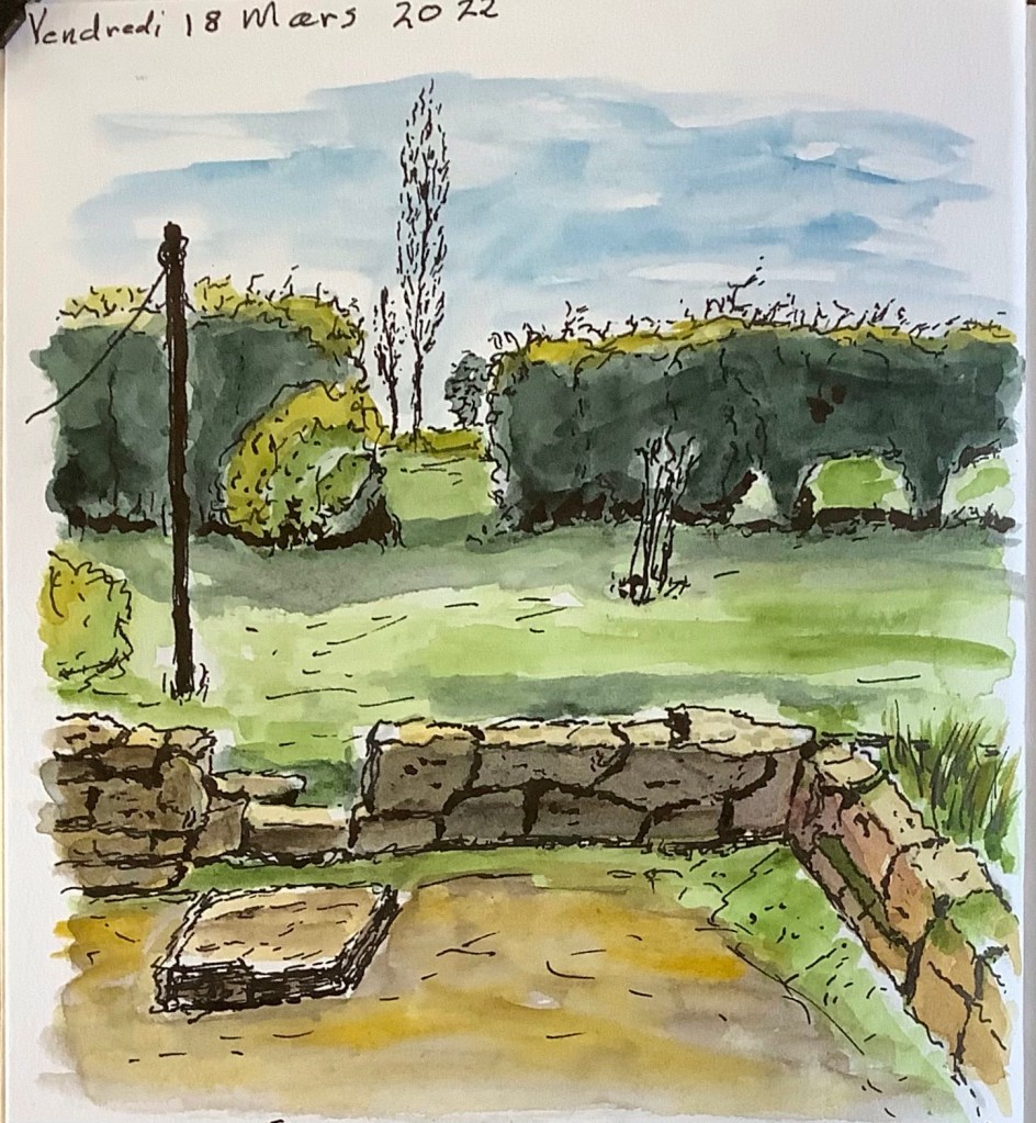 So green and sunny, looks like you’re having lovely weather. I also love the sketch, idyllic 🙂