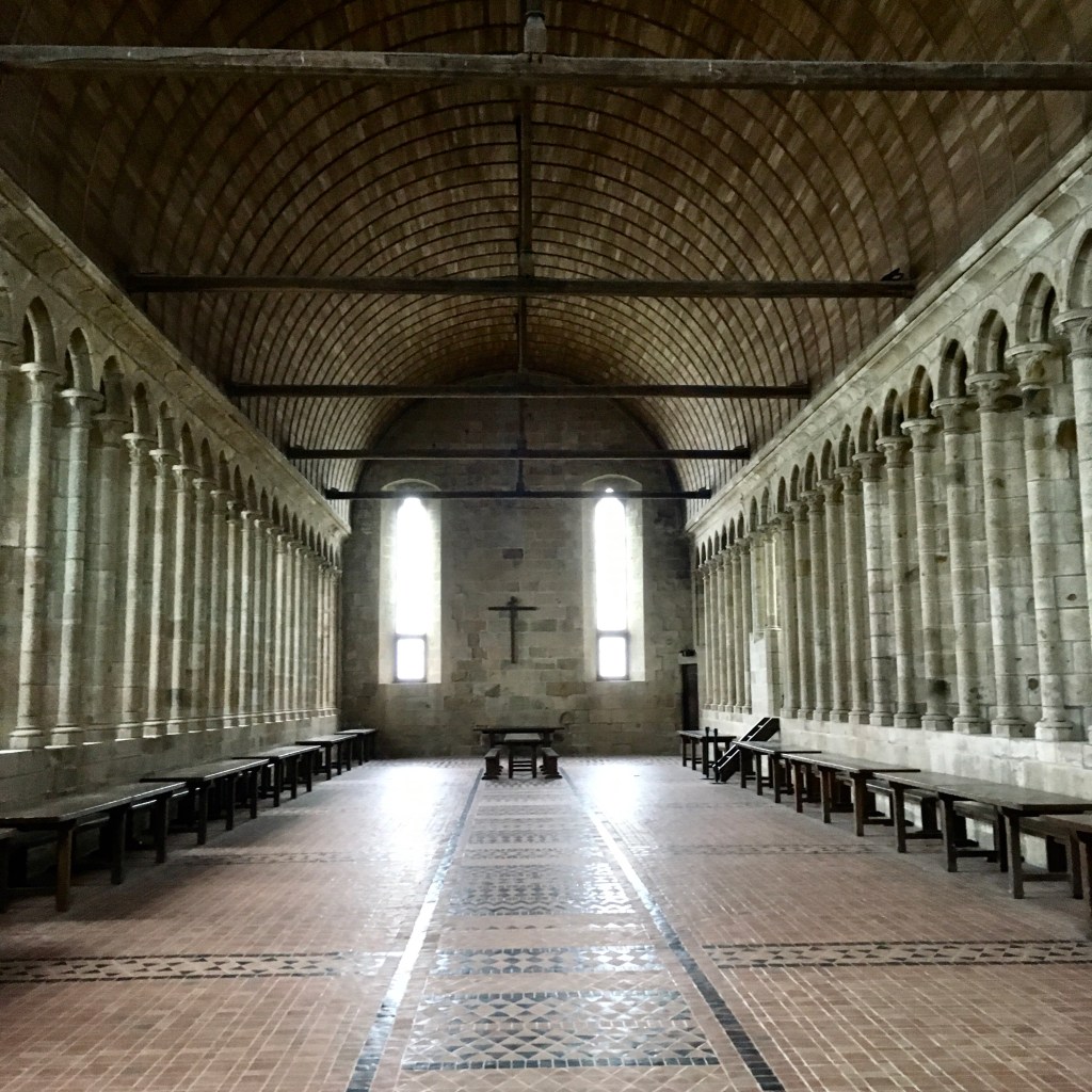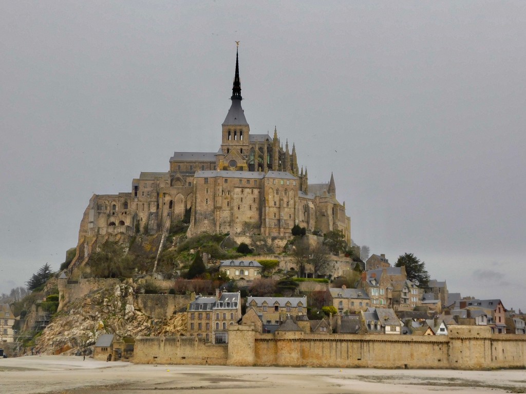Le Mont-Saint-Michel dates back to 708 when the Archangel Michel appeared in the dreams of Saint-Aubert, the Bishop of Avranches, and requested that the Bishop build a sanctuary in his name. Legend has it that Michel had to make several visits to the Bishop before he convinced him to build the abbey. Luckily for us, the Bishop agreed, and the abbey and monastery were built. The existing abbey, monastery, cloisters, great halls and village took 1300 years to complete, and have an interesting history. Due to the unhospitable location of the island, the vicious tides, and the ramparts, the site was never captured by the English during the Hundred Years’ War.