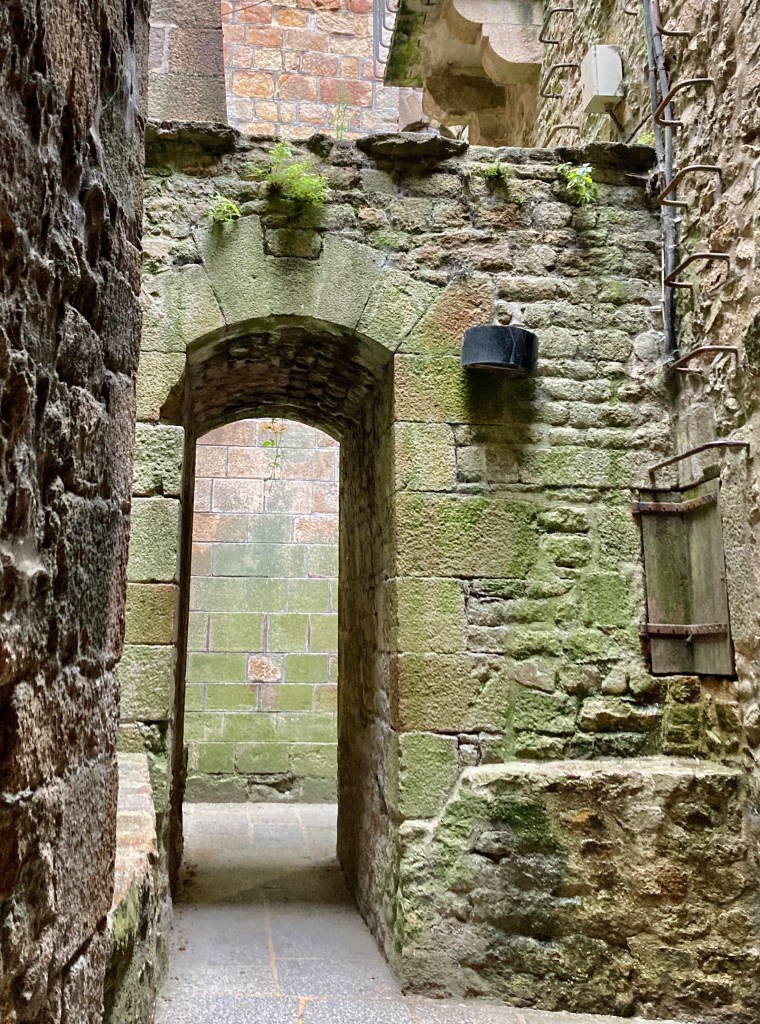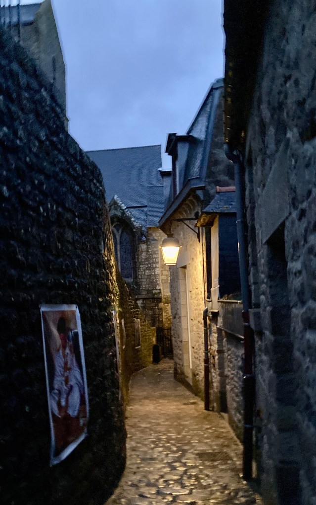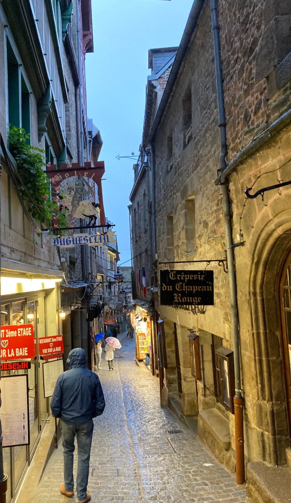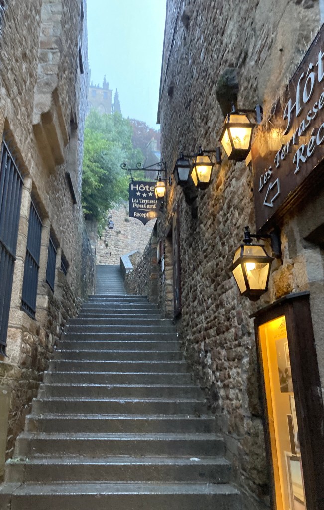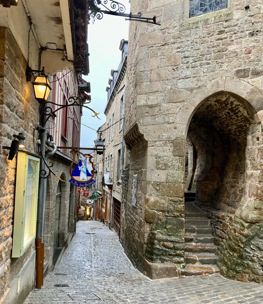 We will always be grateful for our first visit when the village was mostly empty. However, there is another way to avoid the crowds, which is to stay at a hotel in the village. The throngs of tourists are usually gone by late afternoon, leaving the village quiet and calm. Although the abbey is closed at night, it is still enticing to wander through the village’s narrow alleys and passageways after dark.