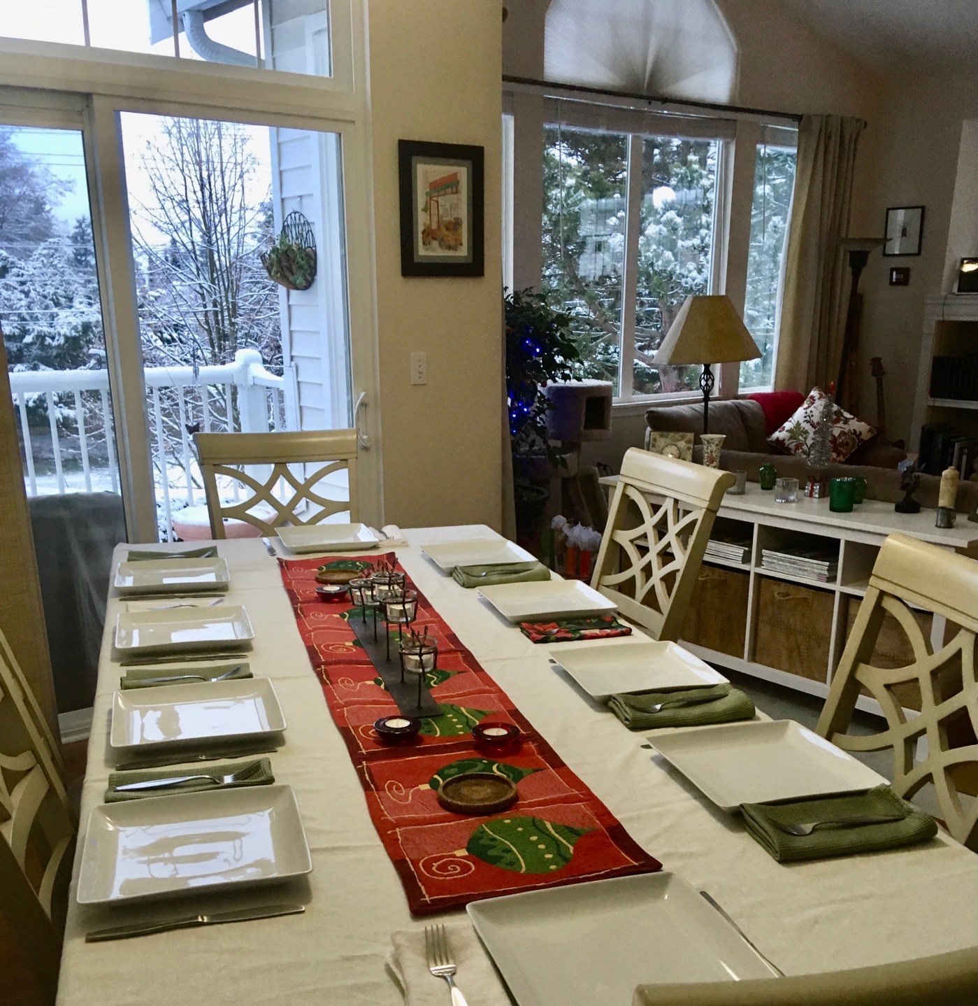 As the actors sing in White Christmas while on the train to Vermont, “Snow, Snow, Snow”. You have missed a lot of snow in Mukilteo whilst living in France (at least this year). Great pictures and you two are quite the entertainers as your lavish dishes and tables settings show.