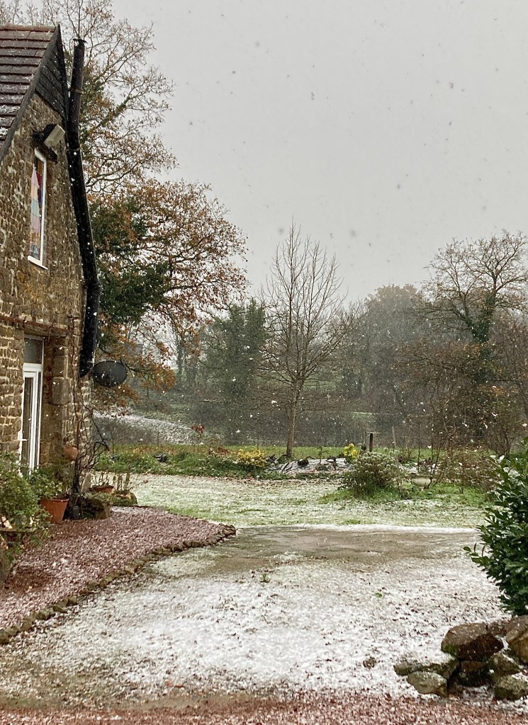 It looks like we’ll have a rainy Christmas here in Normandie, but we did have a dusting of snow a few weeks ago.
