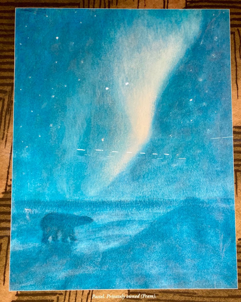 Using watercolors and pastels, he captured the beauty of the frozen landscape.
