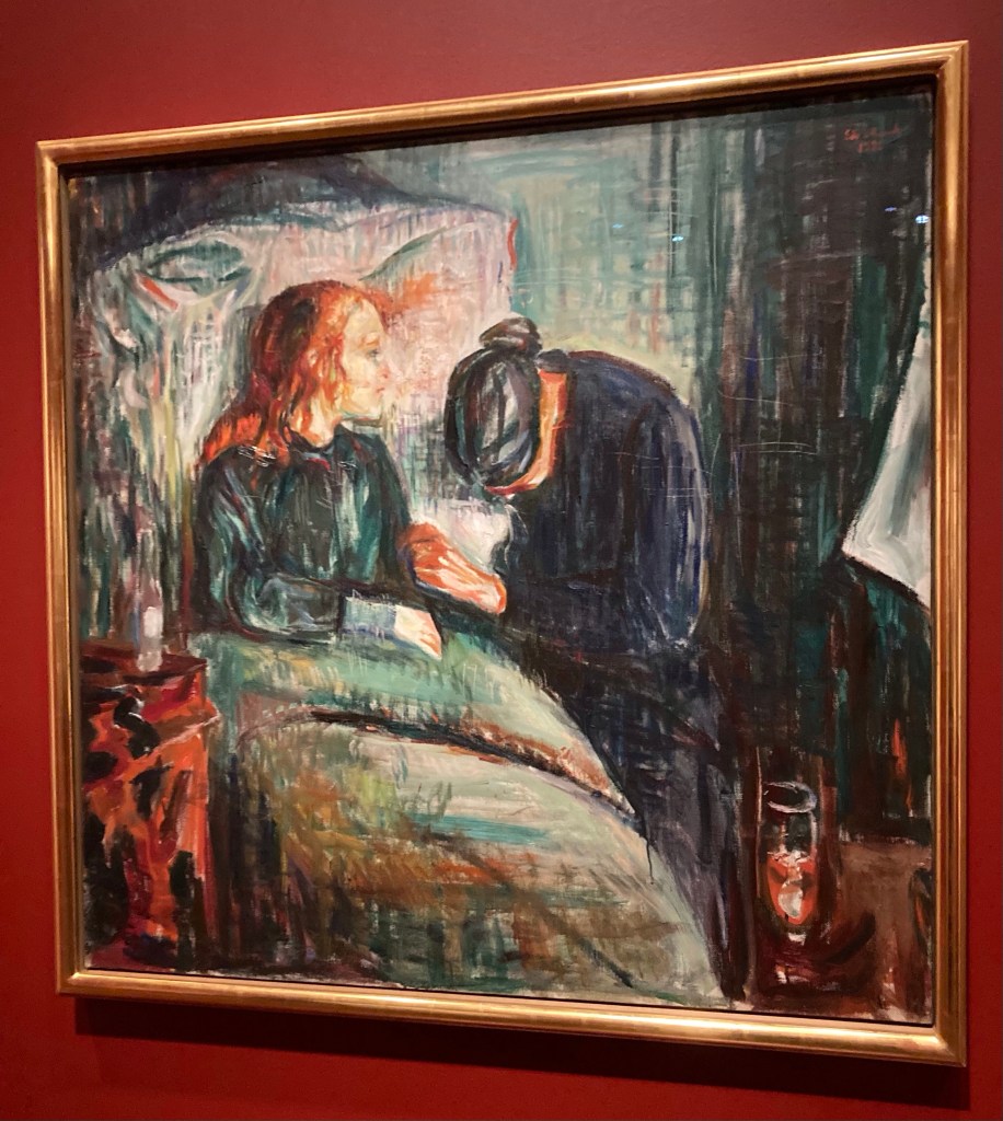 Munch was born in Løten, Norway in 1863 and moved to Oslo (then called Kristiania) in 1864, where his father served as a medical officer. His childhood was consumed with sadness, loss, and fear due to the death of his mother when he was just five years old, and his beloved sister shortly after. These emotions and others are apparent in his art, which in my opinion is quite disturbing.