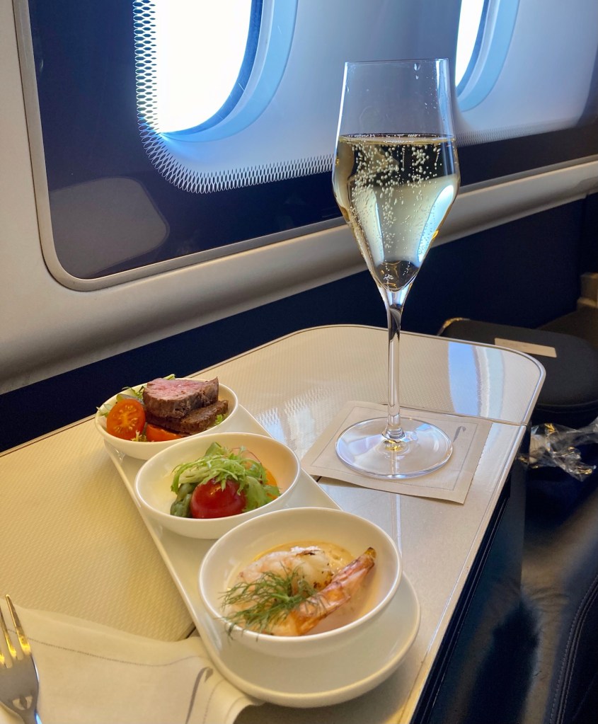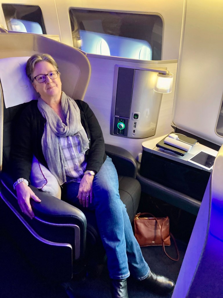 France is where you hang your hats. I love that phrase, and, Shirley is one wise woman. First class, WOW! Thank you for sharing those photos — it looks amazing, and very, very well deserved for you two intrepid, and at-that-moment exhausted travelers. In need of a luxury seat on the plane where you could SLEEP, and a gourmet meal. We miss you already.