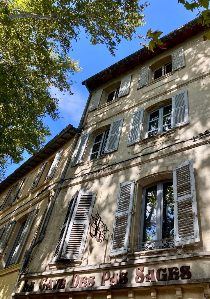 Oh Avignon, I love this town. I fell in love with it on our first visit to France close to 30 years ago, and that feeling has not waned over the decades. The whitewashed buildings, chapped and blistered from the scorching sun, faded blue shutters, narrow, twisting cobbled alleys, the ancient walls that surround the old town; what’s not to love? This town is an architectural gem.