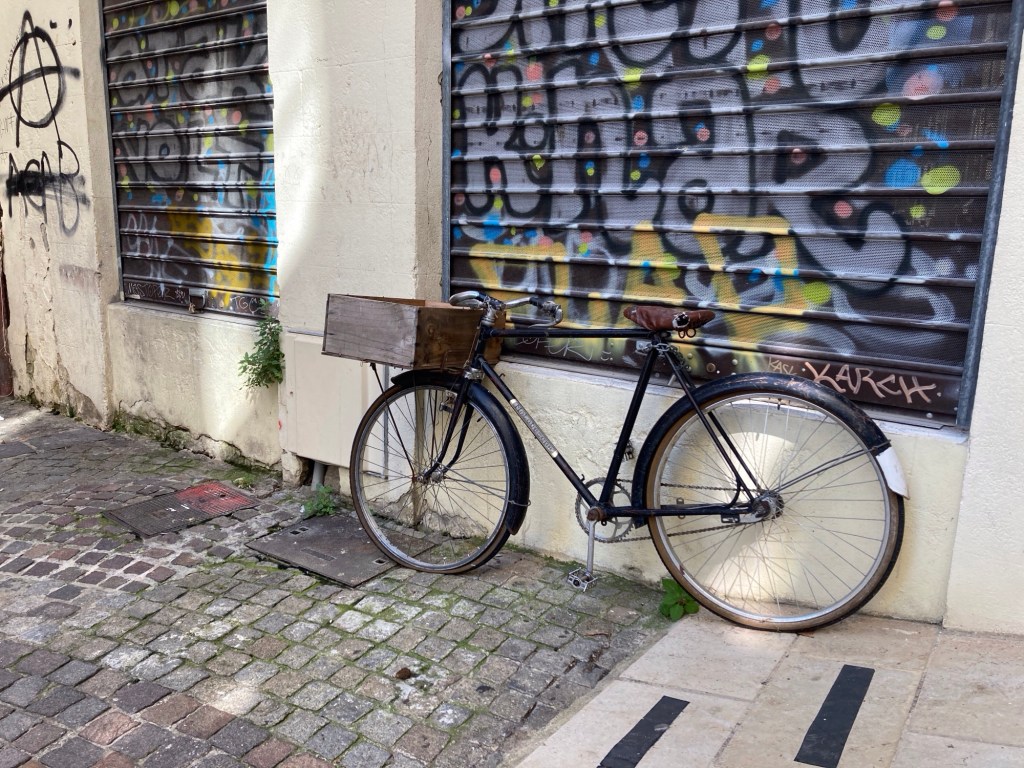 Most mornings in August, we were up early, to get a daily walk and pick up any essentials we needed. The heat doesn’t bother theTravelsketcher as much as it does me, so he often went out in the afternoon to a cafe on Rue des Teinturiers for an afternoon libation. It’s turned into a regular stop for him, and me as well, now that the weather has cooled. Yesterday he enjoyed chatting there with a retired art professor from Paris. You can read about that here.