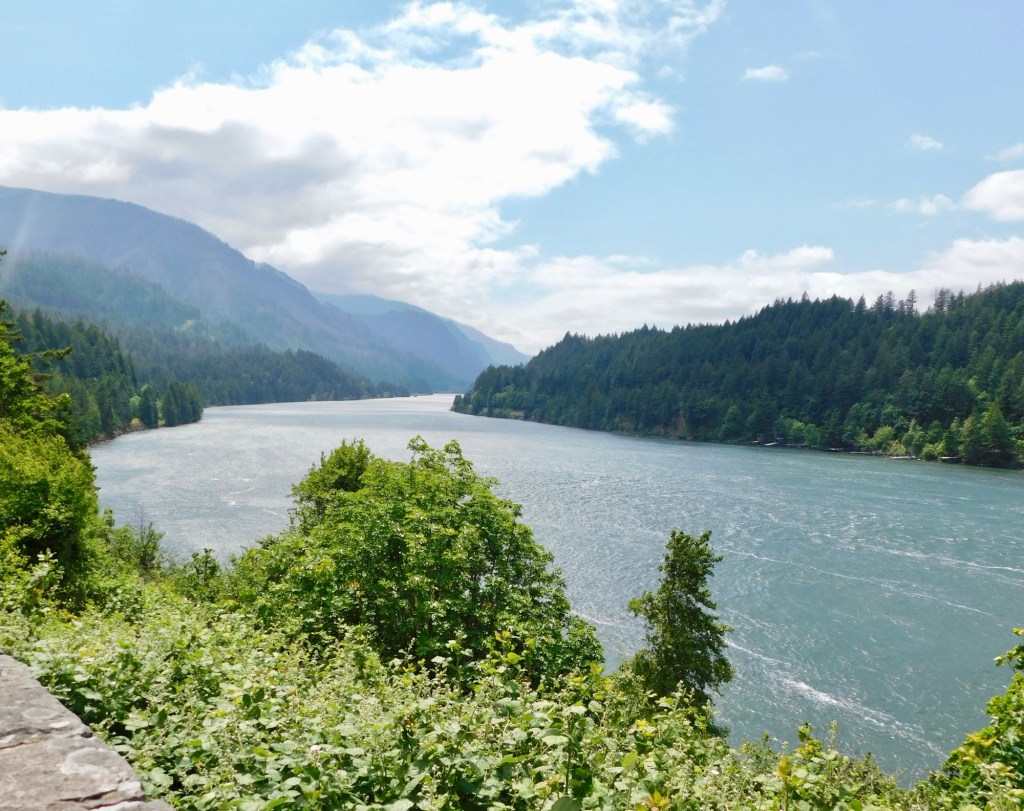 The stunningly beautiful Columbia River Gorge stretches over 80 miles (130 km) between Washington State and Oregon. The Columbia River itself, is the 4th largest river in the US and stretches over 1,200 miles (1,900 km) from British Columbia, Canada, through Washington and Oregon where it empties into the Pacific Ocean at Astoria, Oregon.