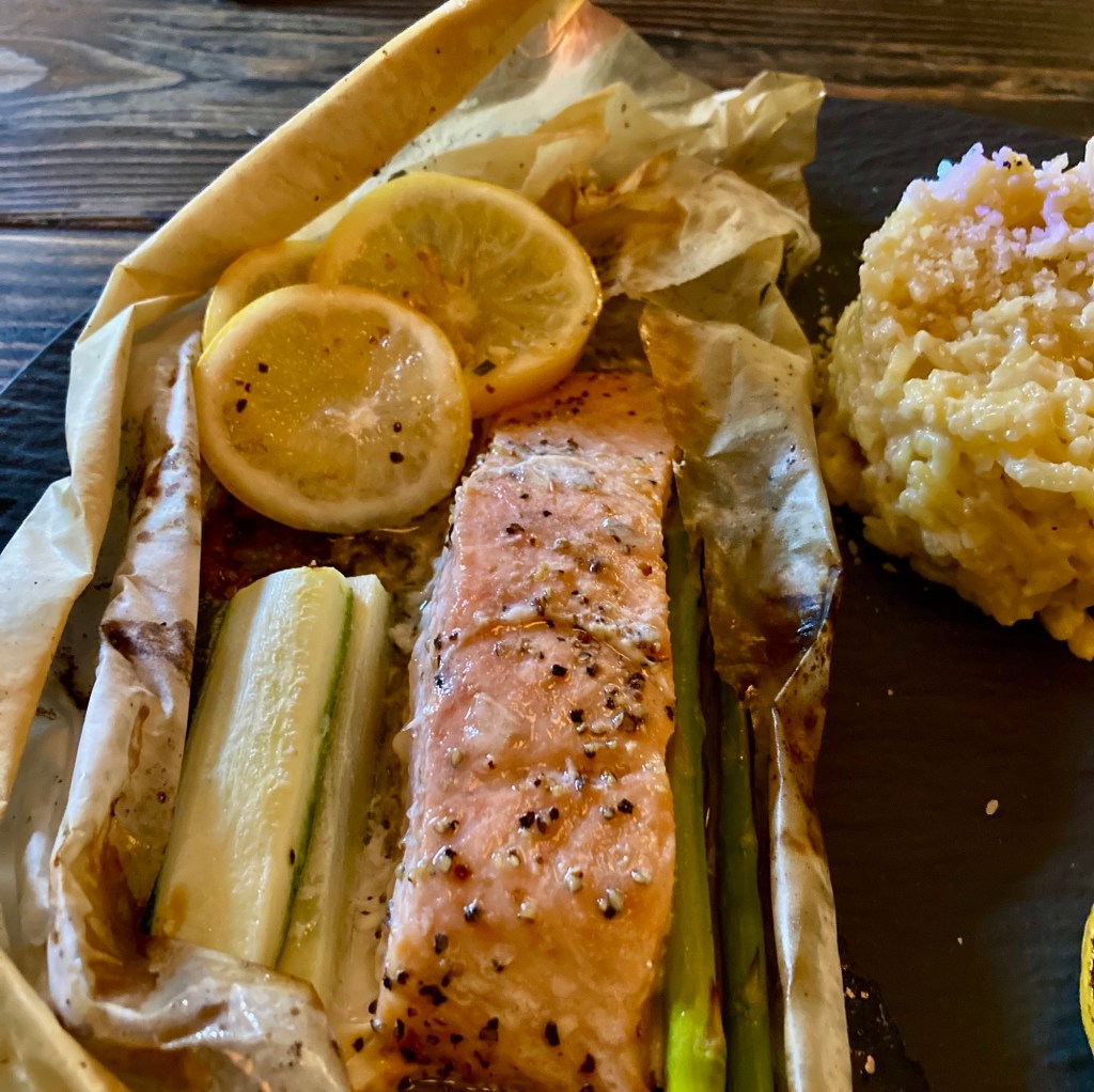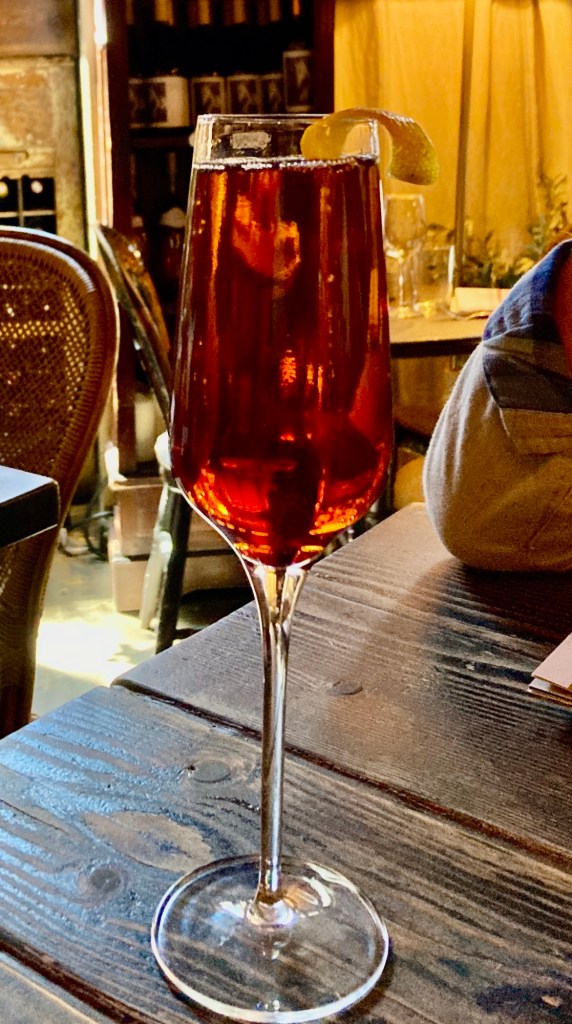 Tim ordered a glass of Châteauneuf-du-Pape, the suggested pairing with his lamb. When Anya brought it, she described it in such a detailed and captivating way that I asked if she was a sommelier. Not yet, but told us that she is studying for her first level sommelier test later this fall.