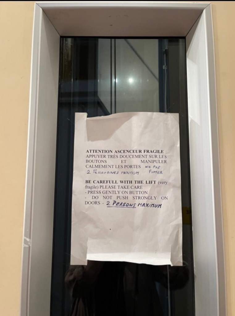 You can’t make observations with regard to ‘tight spaces’ in Paris without a brief mention of elevators and terraces. For the most part, elevators (l’ascenseur in French) are very, very —very—compact, hypersensitive, and somewhat claustrophobic. They literally had to be retro-fitted into existing spaces as installation occurred after buildings were completed and before elevators invented.