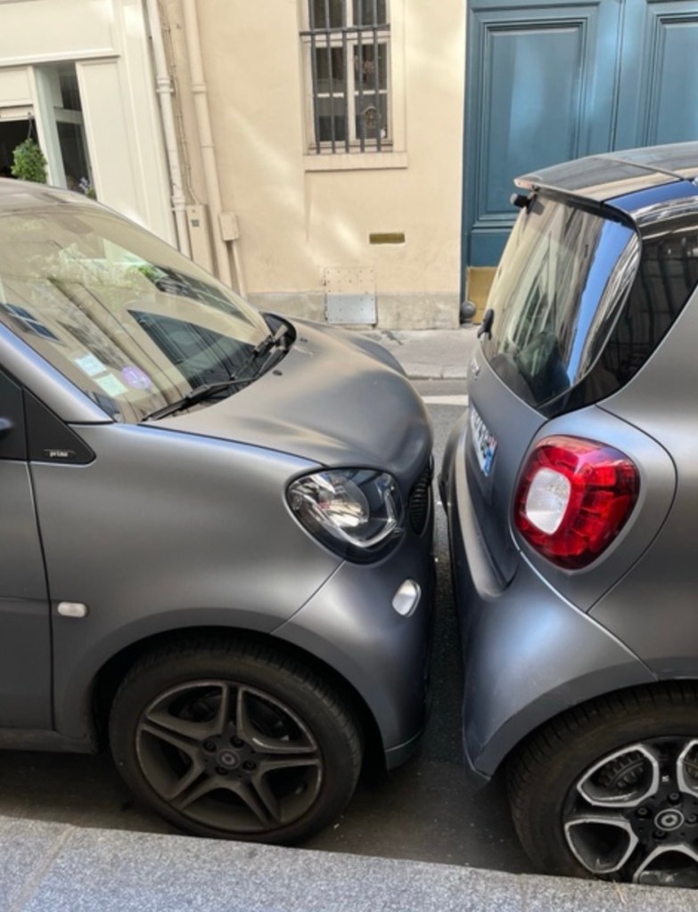 Paris is also an incredibly ‘spatial’ (and chaotic) place if you are driving a car (which we are not). Parking spaces are precious, and many who need to or have chosen to drive opt for small size cars—of which there are many. Whatever the size of the vehicle, driving in Paris requires great patience, knowledge of myriad streets, and an ability to maneuver into tight parking spaces. As shown in these photos, some people have met that last challenge successfully. The questions remains—with one exception, how on earth do the others get out of those parking spaces…?