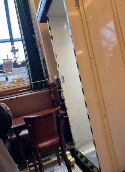 And today, we observed a three foot square suddenly ‘open’ then rise from the floor right next to the table across from us. The elevator (ostensibly from the underworld) was swiftly loaded with a recent food delivery and quickly lowered and disappeared as though it had never happened. No one missed a beat, but it would have definitely startled me if I had been sitting right there!