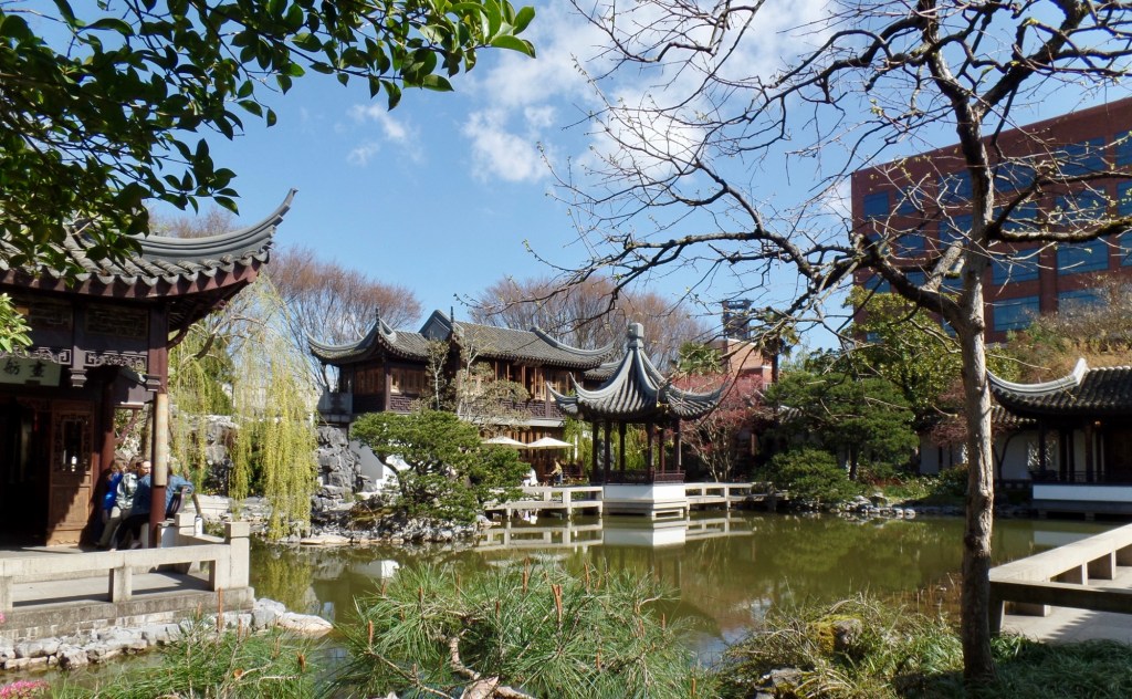 Lan Su Chinese Garden, aka the Garden of Awakening Orchids, is a glorious, walled garden in Portland’s Chinatown neighborhood. It encompasses one full city block and was inspired by the gardens of Portland’s sister city, Suzhou, Jiangsu Province, China.
