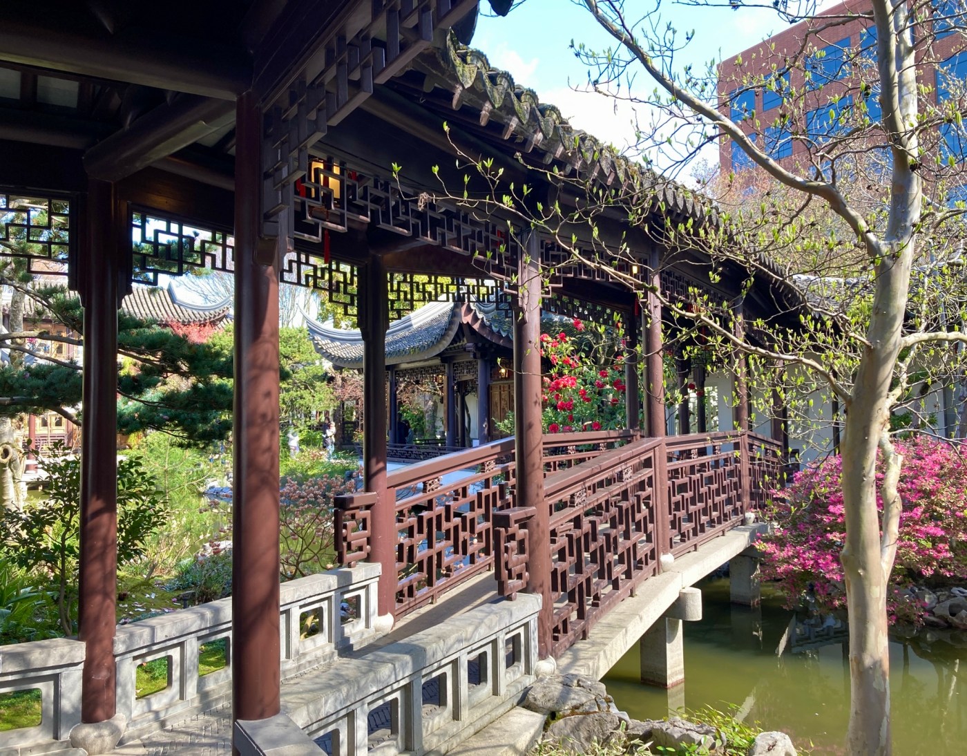Lan Su Chinese Garden, aka the Garden of Awakening Orchids, is a glorious, walled garden in Portland’s Chinatown neighborhood. It encompasses one full city block and was inspired by the gardens of Portland’s sister city, Suzhou, Jiangsu Province, China.