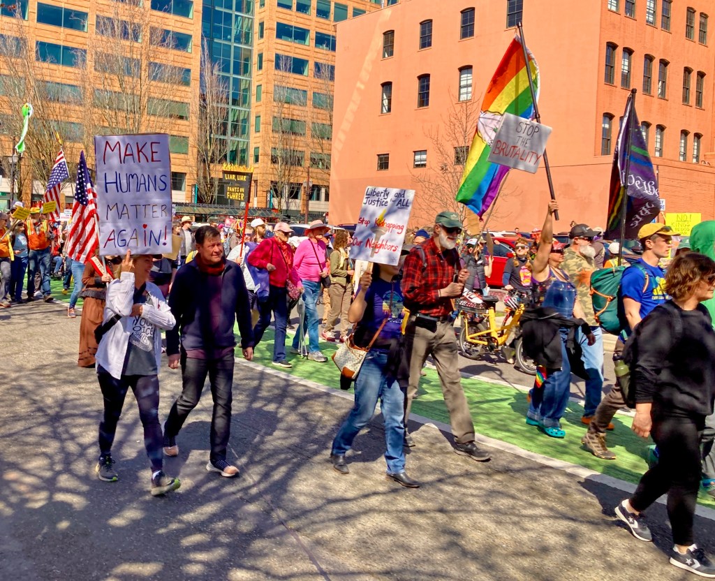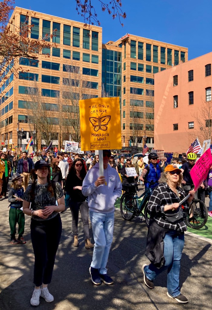 We marched and chanted with this huge group for a while, then stood on a street corner to take photos. It was a peaceful event with a strong sense of camaraderie and unity. There were so many creative and clever signs as shown below.